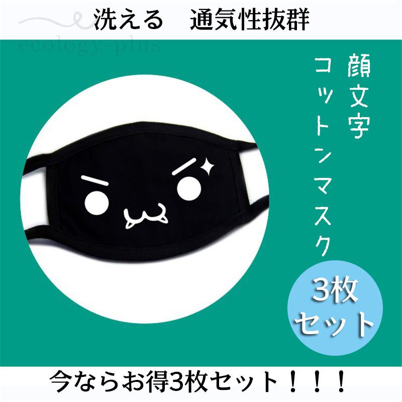 マスク コットン 布マスク 防菌 防臭 洗える 3枚 大人用 顔文字 抗菌 Uvカット 花粉対策 プリント Zl Kz Ecology Plus 通販 Yahoo ショッピング